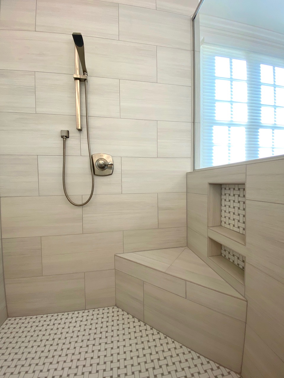 These homeowners hired us to complete their North Raleigh master bathroom remodel, transforming it into a stunning oasis that was more to their taste. Overall, the bathroom was in good shape when we started, but the design dated from the early 2000s and needed freshening up.