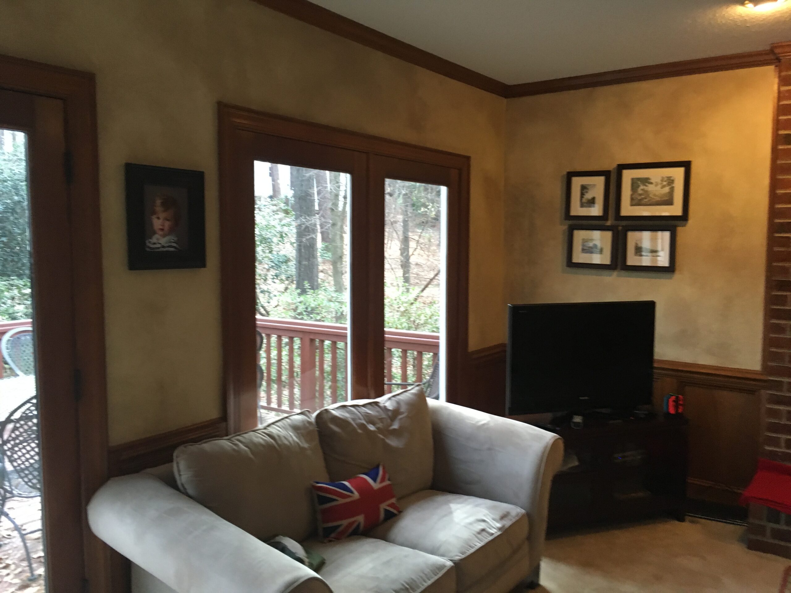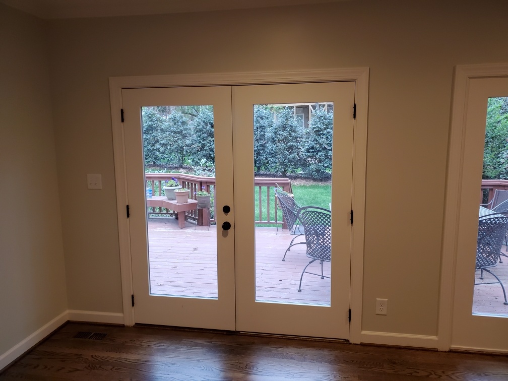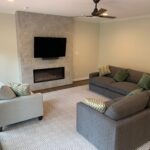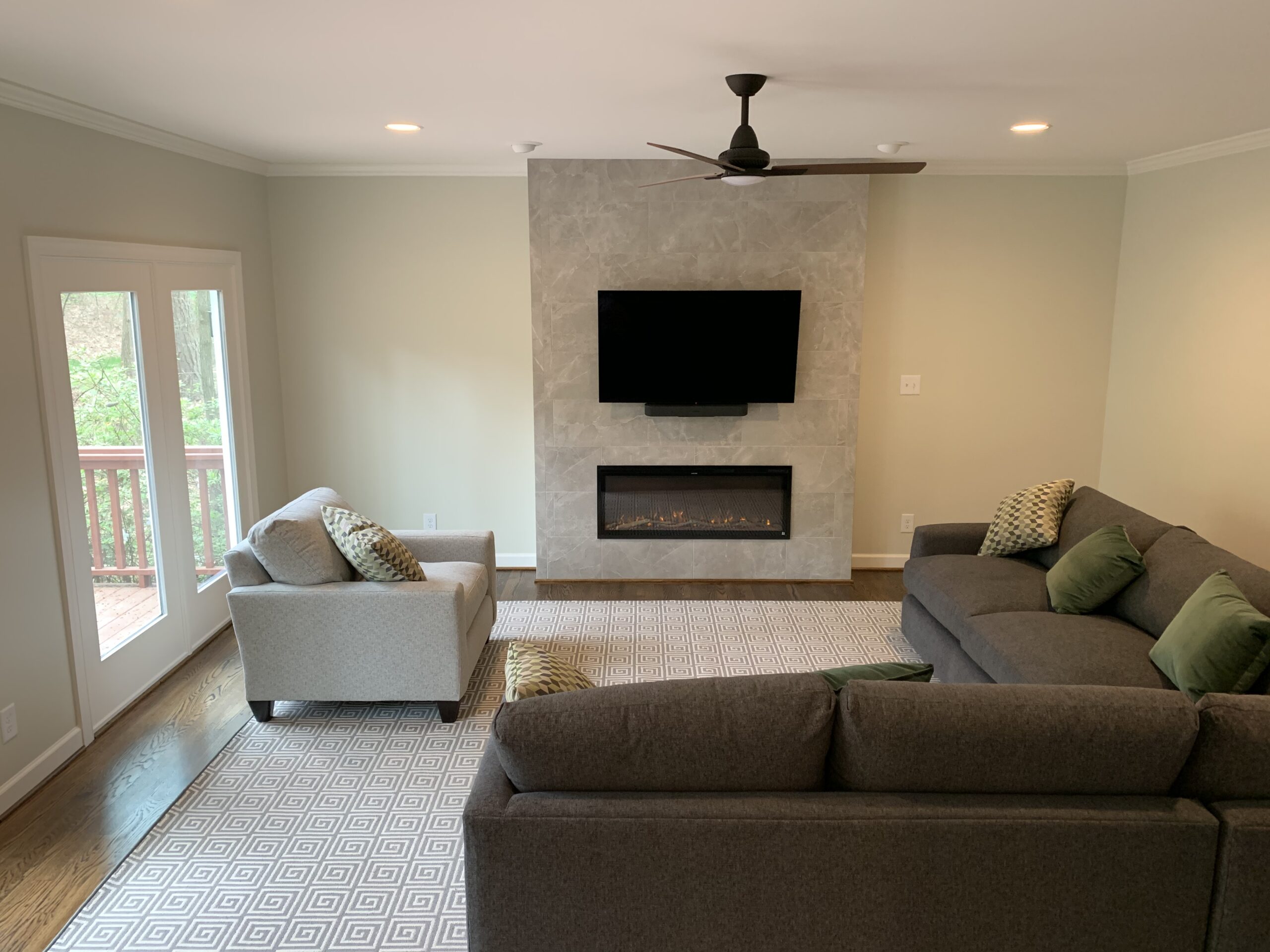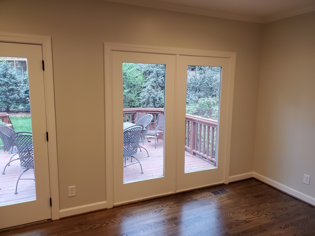 These homeowners are thrilled with their updated living space! By removing the wood wainscoting, installing a new electric fireplace with tile surround, adding new lighting, and painting the entire space, we drastically lightened and brightened the space. New exterior french doors and hardwood floors improved the look and function of this versatile room. If you have been dreaming of updating your home, contact us for a consultation. We look forward to working with you!