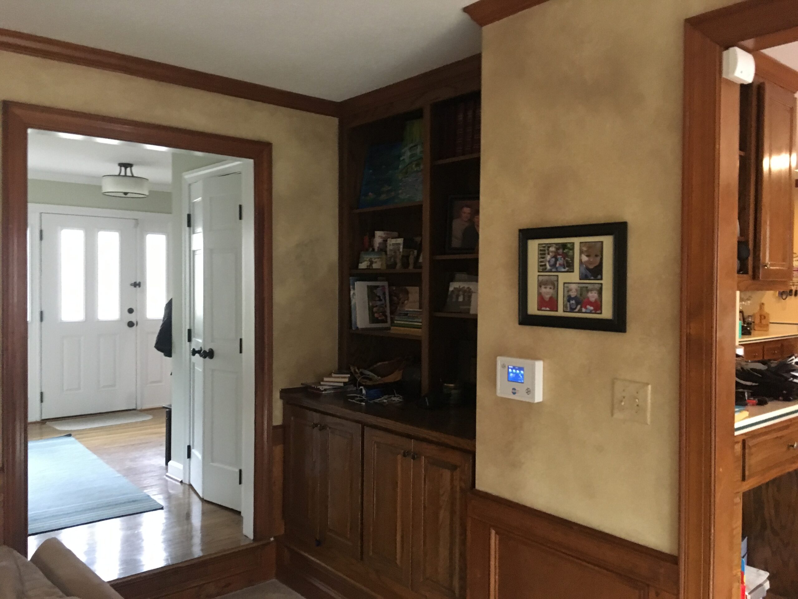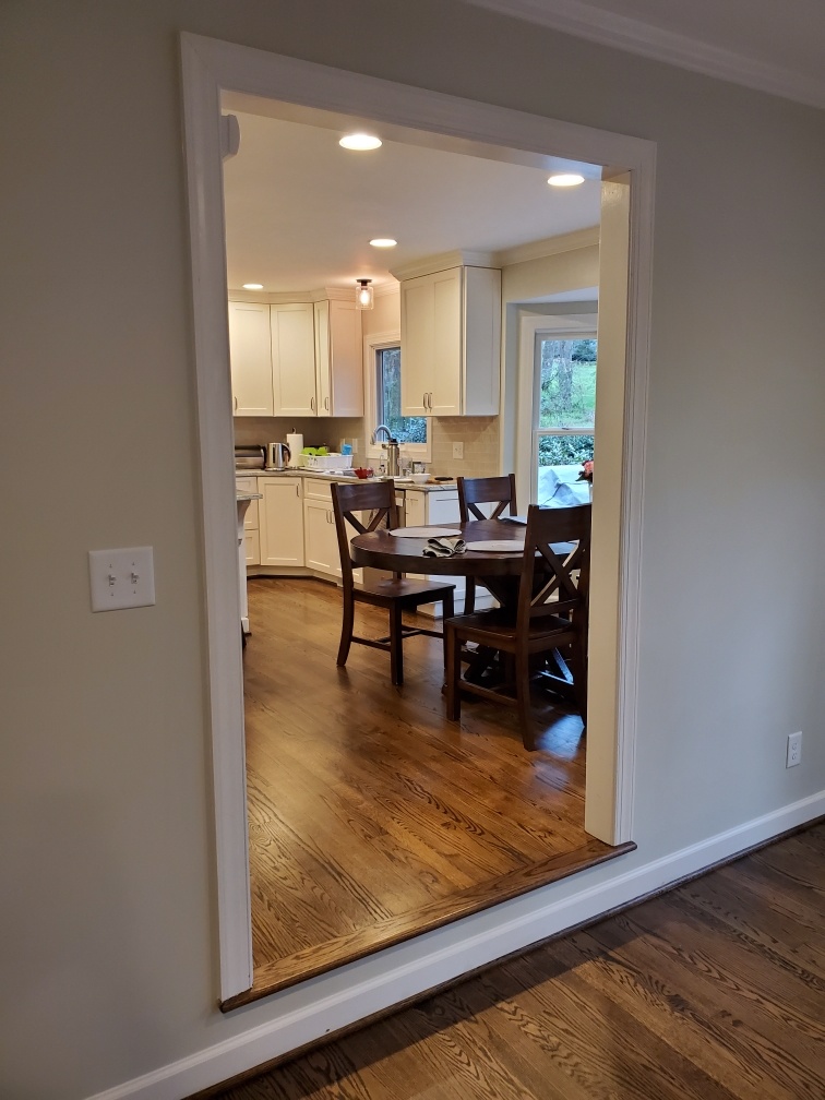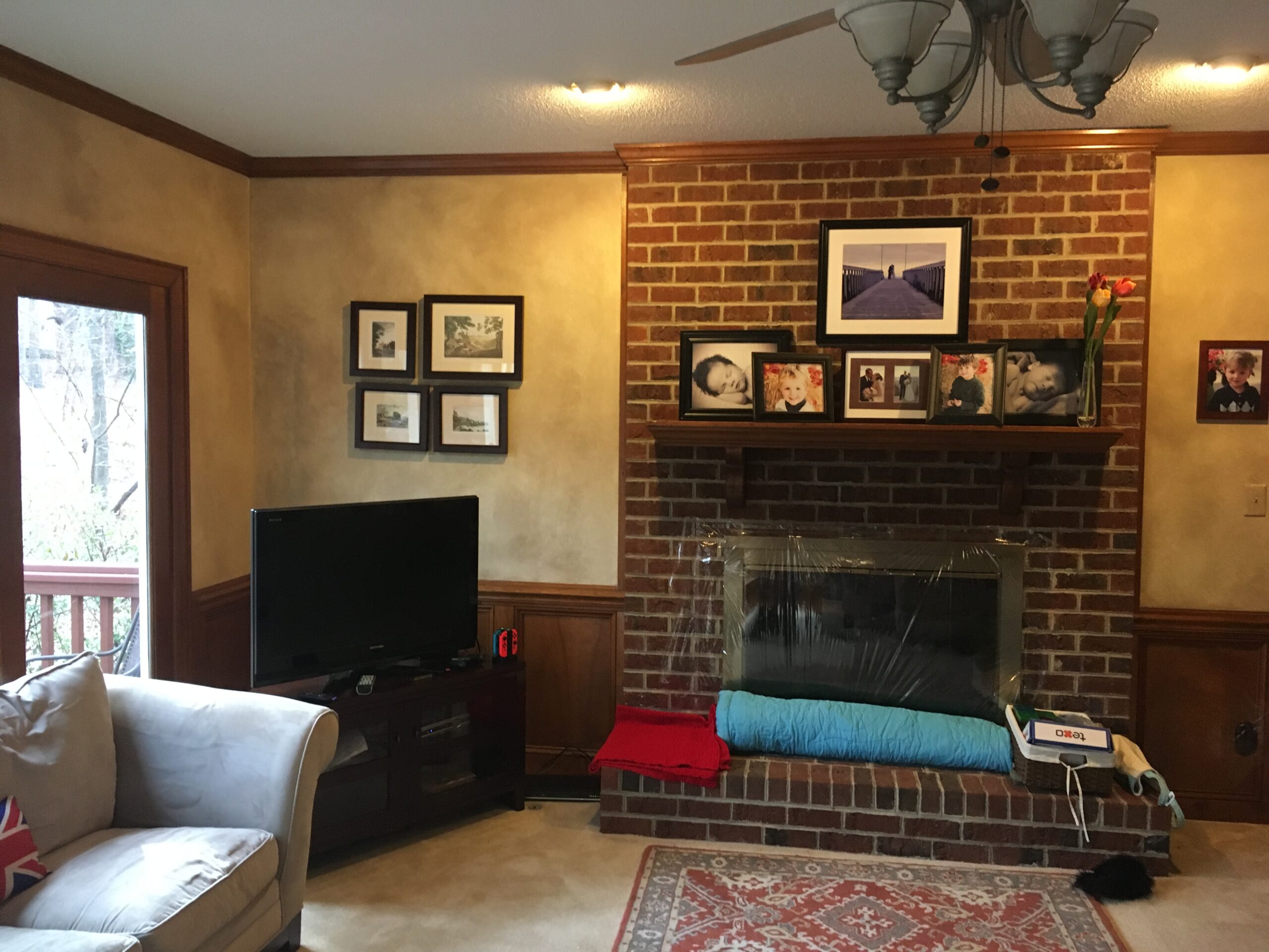 These homeowners are thrilled with their updated living space! By removing the wood wainscoting, installing a new electric fireplace with tile surround, adding new lighting, and painting the entire space, we drastically lightened and brightened the space. New exterior french doors and hardwood floors improved the look and function of this versatile room. If you have been dreaming of updating your home, contact us for a consultation. We look forward to working with you!
